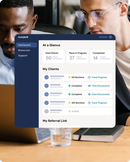 Refer your clients to Trust & Will to offer them your custom discount on the estate plan of their choosing.