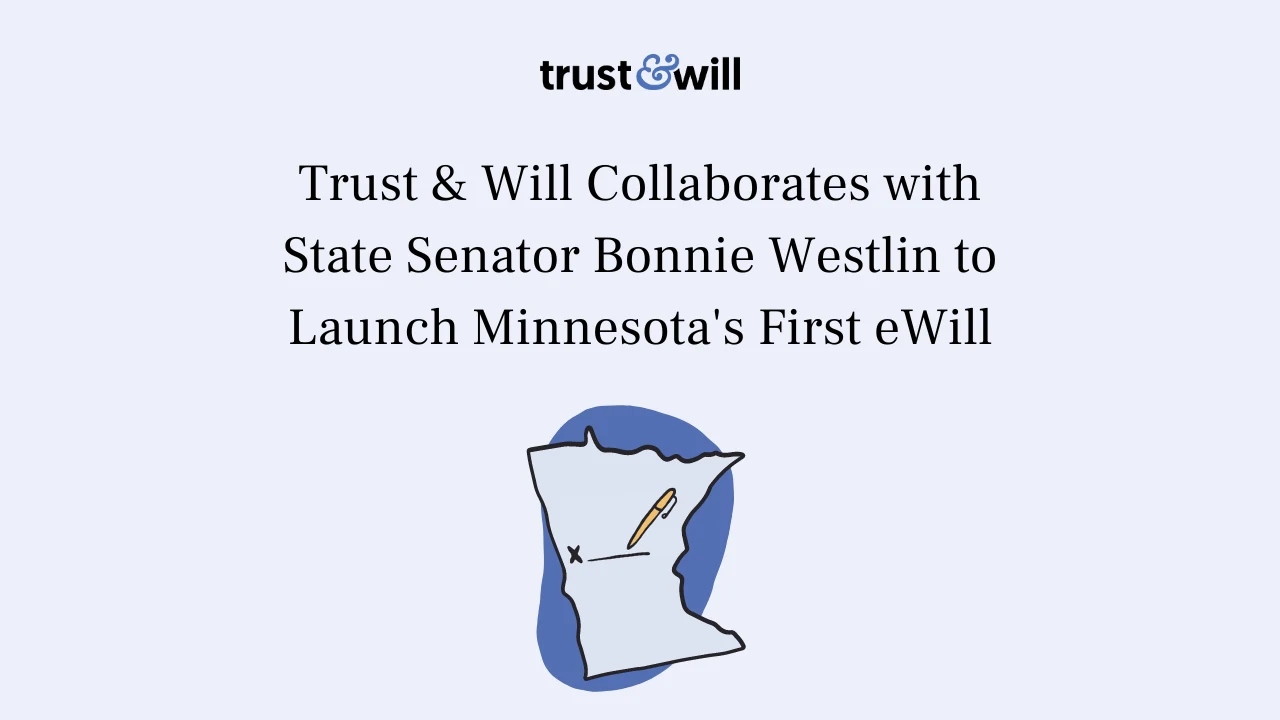 St. Paul, MN - August 2, 2023 – Trust & Will, the leading digital estate planning and settlement platform in the U.S., completed the first electronic will (eWill) in Minnesota in collaboration with State Senator Bonnie Westlin to kick off National Make-A-Will Month.