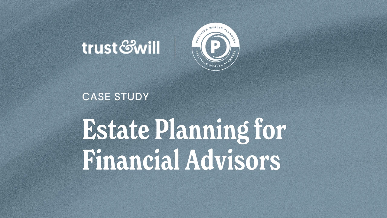 Interested in partnering with Trust & Will to enhance your own clients’ estate planning needs? Learn more about how you can join over 17,000 financial advisors and firms who are delivering peace of mind to their clients by offering a comprehensive estate planning solution. Schedule a free demo today.